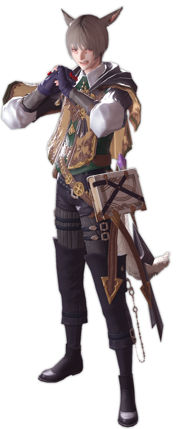 He's known as a bit of a troublemaker amongst the studium student body due to his disrespect for authority and loud stance against Sharlayan's isolationist policies and the Bibliothecs.